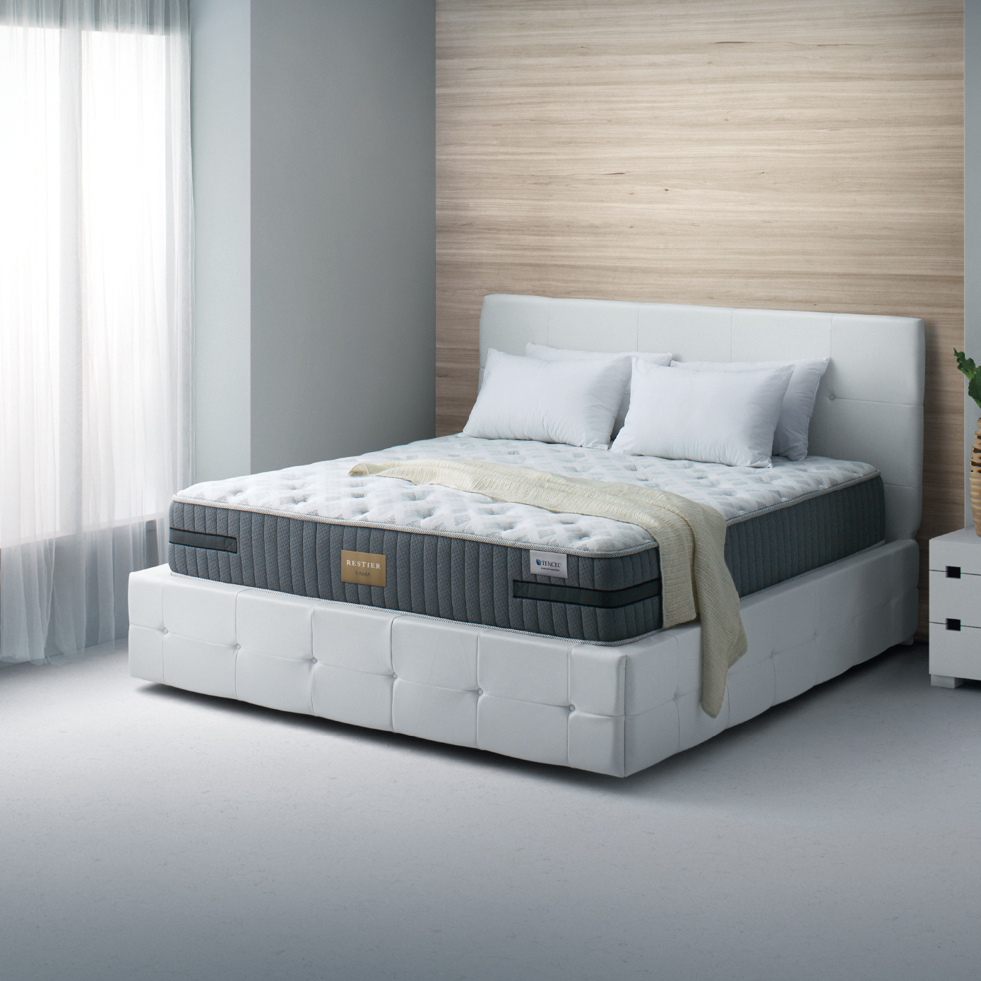 - เอกสิทธิ์เฉพาะการผลิตยางพาราของเรสเทียร์ ด้วยความหนา 7.5 ซม. ให้สัมผัสสมดุลที่นุ่มสบาย กระจายแรงกดทับ ลดแรงสั่นไหวบนที่นอน และช่วยรองรับแนวกระดูกสันหลังอย่างถูกต้องตามหลักสรีรศาสตร์ พร้อมระบบ Restsolation Technology ที่ช่วยลดแรงสั่นสะเทือนจากการเคลื่อนไหวได้มากถึง 300% ให้คุณสัมผัสความผ่อนคลายอันสมบูรณ์แบบ