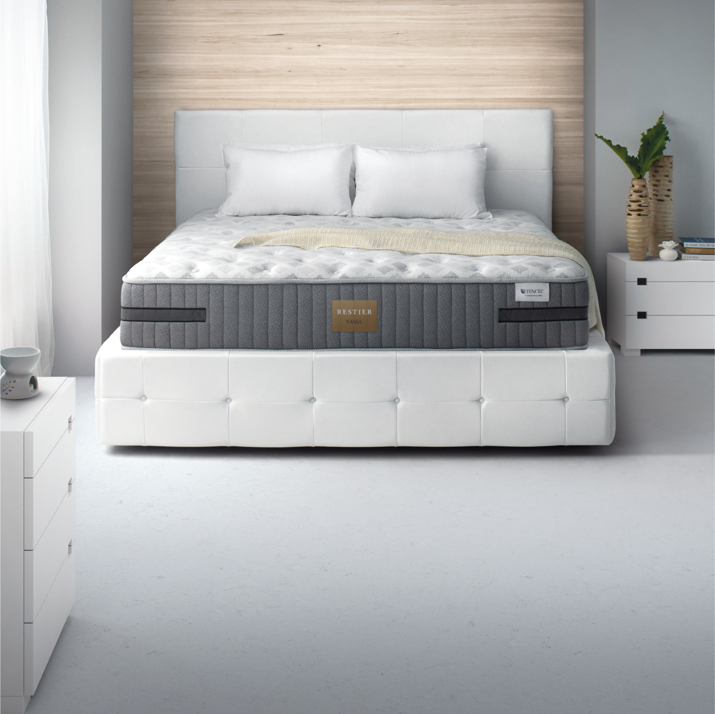 Yamaที่นอนเรสเทียร์รุ่นยามา มาพร้อมความพิเศษระบบพ็อกเก็ตสปริง ลิขสิทธิ์เฉพาะของเรสเทียร์จากเยอรมัน รุ่น 3 - IN – 1 Pocketed Coil Series (2.2) ด้วยขดลวดสปริง 3 เส้น ที่ถูกขดเกลียวให้เป็นหนึ่งเดียวสร้างการประสานงานของลูกสปริงแต่ละลูกแบบไร้รอยต่อในแบบรวงผึ้ง แต่คงไว้ซึ่งการทำงานแยกกันแบบอิสระ ที่ช่วยเสริมความแข็งแรงของที่นอน ให้การโอบรัดสรีระรองรับน้ำหนักอย่างเป็นธรรมชาติ หุ้มด้วยผ้าคุณภาพชั้นเยี่ยมอีกชั้นเพื่อสบายอย่างเหนือระดับ และเหนือชั้นกว่าอีกขั้นด้วยเทคโนโลยีลดแรงกดทับที่ช่วยให้ท่านนอนหลับได้นานโดยไม่สะดุ้งตื่น และเพิ่มสัมผัสนุ่มแน่นขณะการนอน ให้คุณรู้สึกสบายและผ่อนคลายอย่างเป็นธรรมชาติด้วยน้ำยางพาราธรรมชาติชั้นเยี่ยม ที่ถูกออกแบบให้มีความหนาถึง 7.5 ซม. มีประสิทธิภาพกระจายน้ำหนักเพื่อสลายแรงกดทับของร่างกายอันเป็นคุณสมบัติเด่นของที่นอนยางพาราธรรมชาติ 100% รองรับทุกสัดส่วนร่างกายได้อย่างถูกต้องตามหลักสรีรศาสตร์ ช่วยจัดแนวกระดูกสันหลังให้ถูกสุขลักษณะการนอน พร้อมเพิ่มระดับการหมุนเวียนโลหิตสู่การนอนหลับที่จะเติมเต็มสุขภาพของคุณในระยะยาว